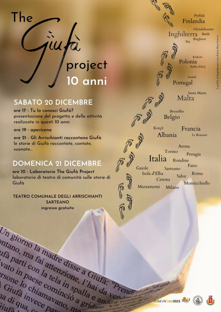 The two-day event will bring together artists, collaborators and friends of the project, with contributions and institutional greetings. With this return, The Giufà Project renews its bond with the Valdichiana Senese, reaffirming its vocation: to use theatre, storytelling and art as tools for dialogue, participation and community building.